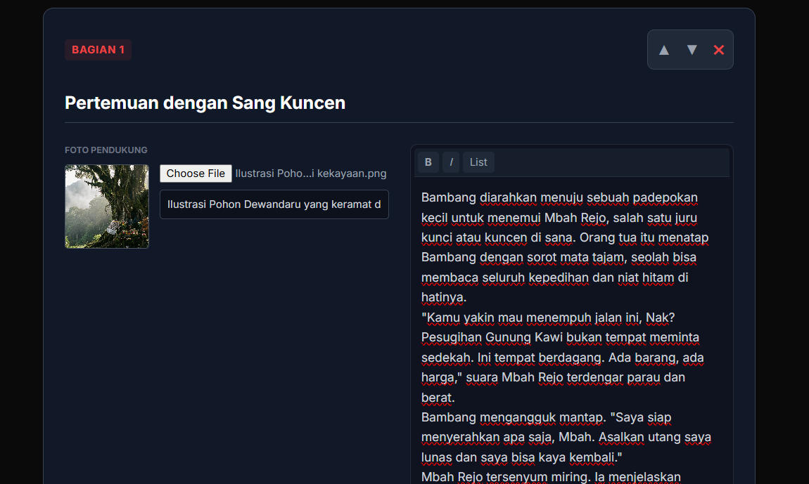 Gunakan Sub-Judul: Pecah ceritamu menjadi beberapa bab atau bagian kecil menggunakan fitur Sub-Judul (Heading).